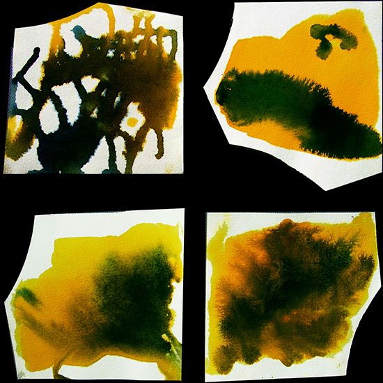 4 Ausrisse, 2x2 cm, Aquarell auf Papier